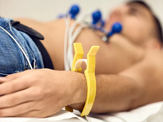 During the examination, the patient lies on their back while a technician places electrodes on their chest, arms, and legs. The data recording takes only a few seconds, and the electrodes are then removed from the patient’s body.